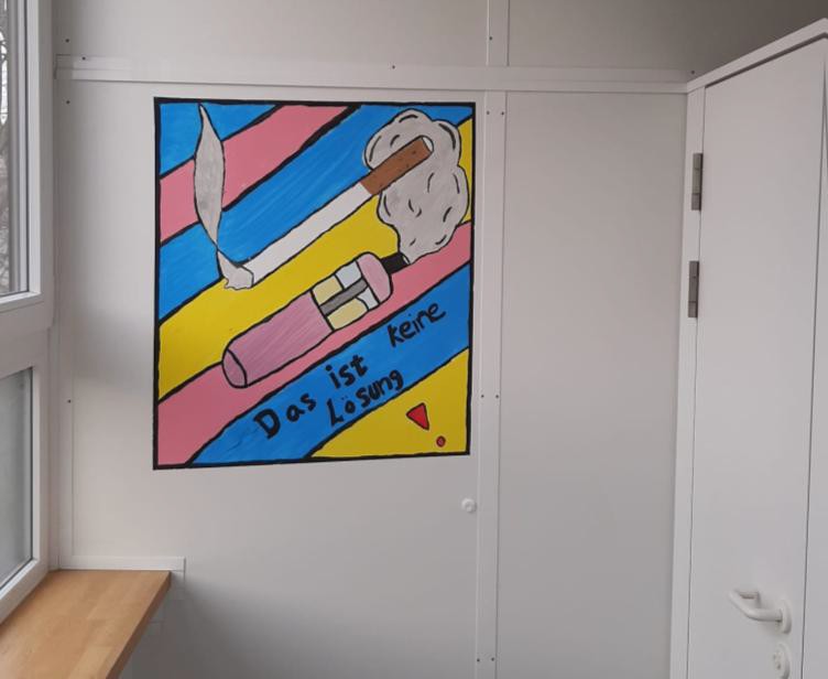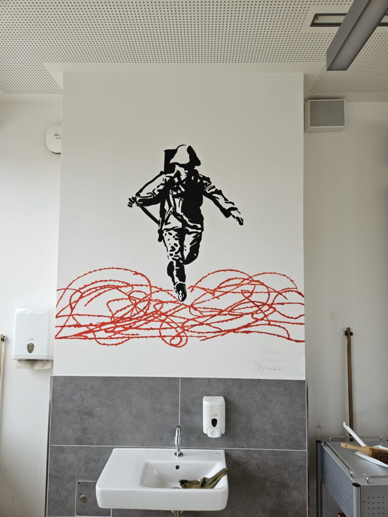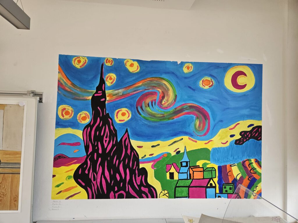 Die Entwürfe, welche die meisten Stimmen ergattern konnten, werden anschließend in Gruppen von den Schülerinnen und Schülern praktisch im Schulgebäude umgesetzt. Somit können die Abschlussklassen etwas Persönliches in dem Gebäude hinterlassen, in dem sie sechs Jahre ihres Lebens verbracht haben.